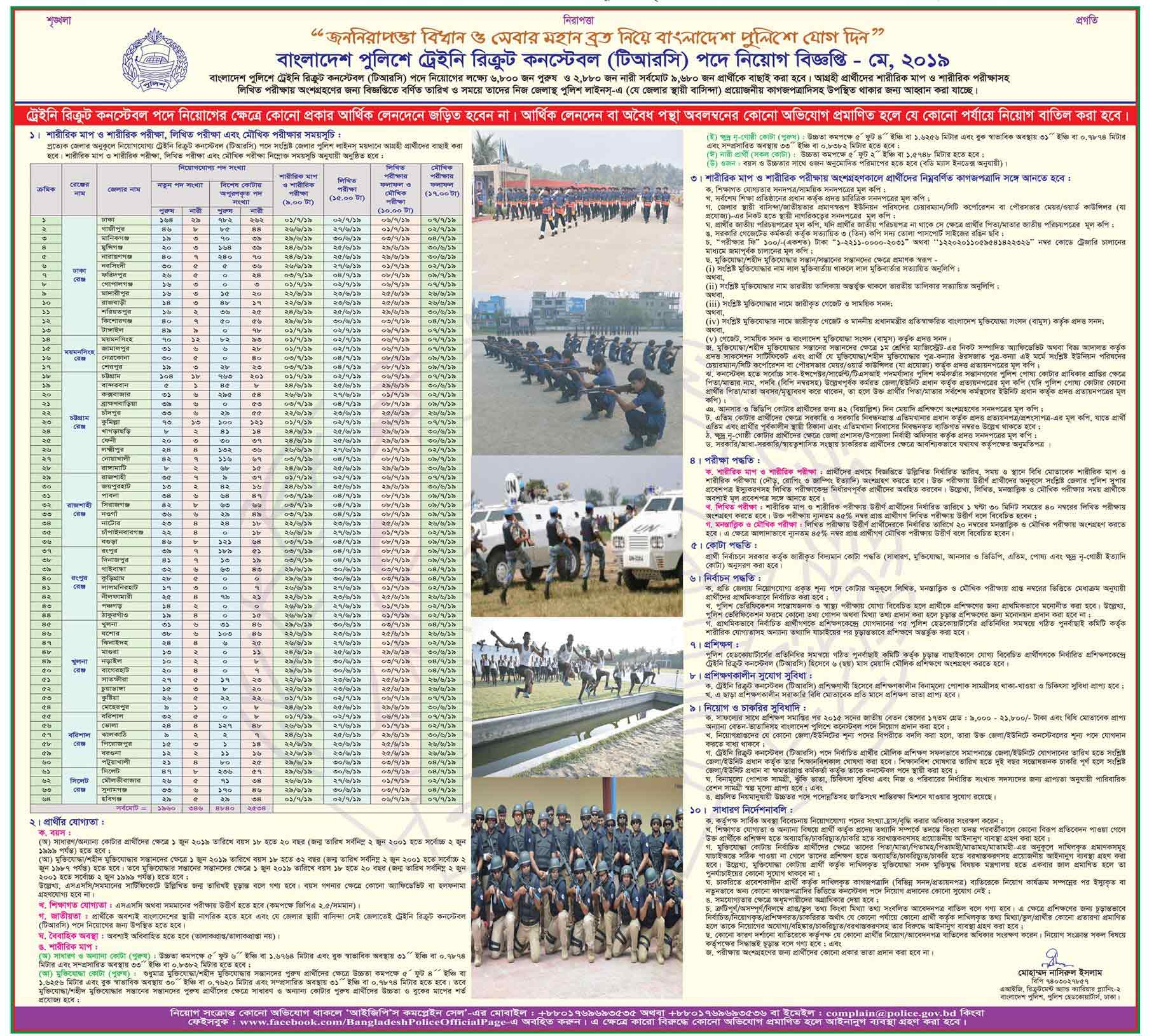 বাংলাদেশ পুলিশে ‘ট্রেইনি রিক্রুট কনস্টেবল (টিআরসি)’ পদে ৯,৬৮০ জনকে নিয়োগ দেওয়া হবে। আগ্রহীরা নির্ধারিত সময়ে নিজ নিজ জেলা পুলিশ লাইনস ময়দানে বাছাইতে অংশগ্রহণ করতে পারেন।